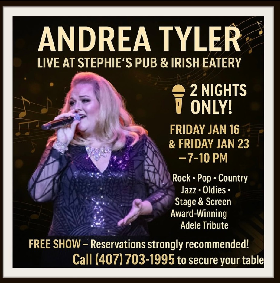 2 Nights of music performed by Andrea Tyler, includes an Adele tribute!!! Reservations suggested!!! Friday the 16th January, and Friday the 23rd January.